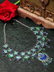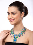 This finely crafted Silver-Toned & Green Brass Silver-Plated Meenakari Necklace is must-have addition to your jewelry collection. It is expertly crafted from brass and silver for a stunning look with an intricate meenakari pattern. The luxurious design makes this a versatile piece you can wear on various occasions.