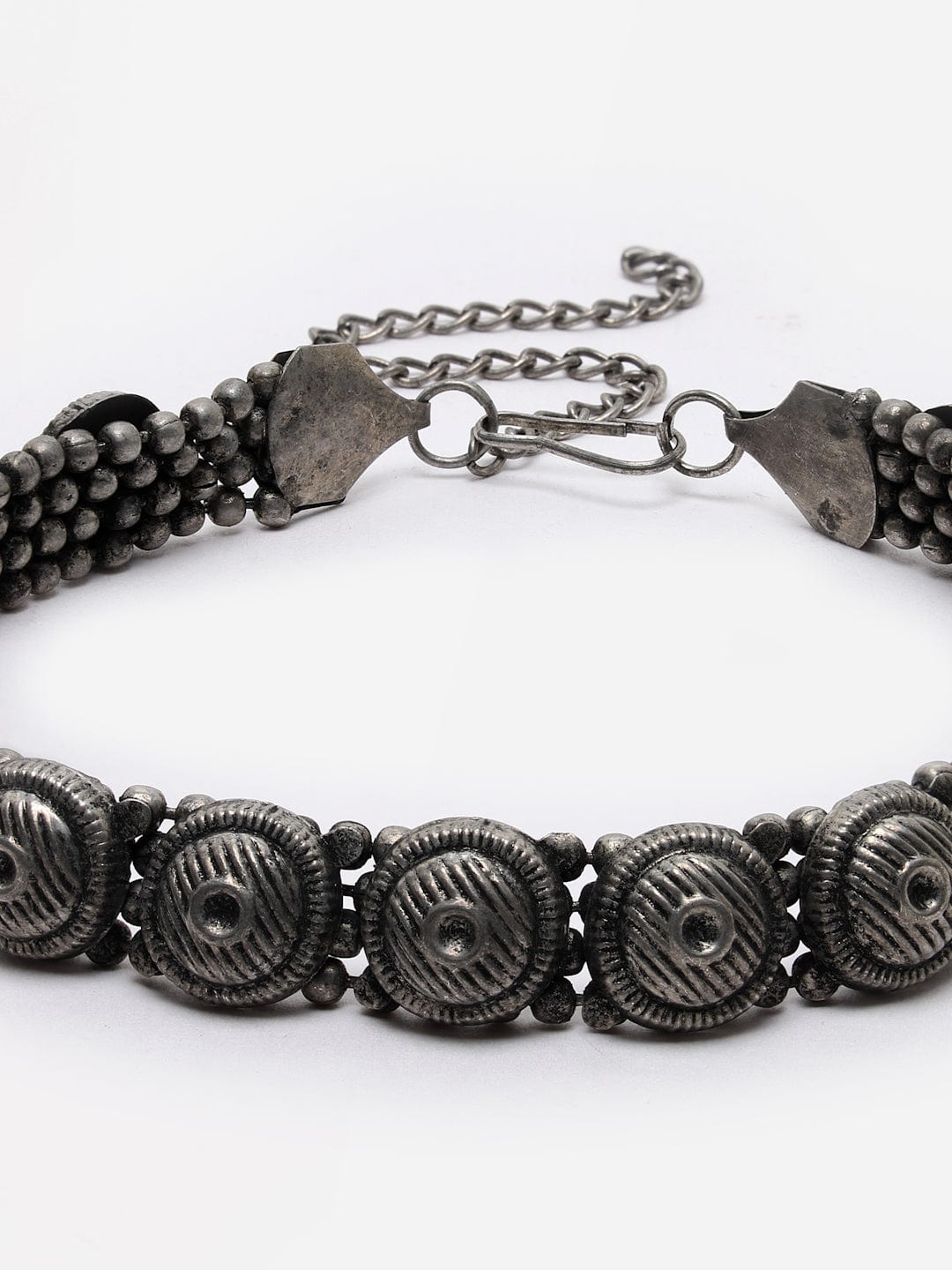 Complete your look with this Silver-Toned & Gunmetal-Toned Brass Silver-Plated Choker Necklace. Crafted from silver-toned and gunmetal-toned brass silver-plated for a stylish and durable piece, this necklace is the perfect finishing touch to your ensemble.