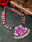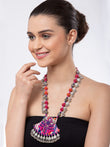 Silver-Toned & Magenta Brass Silver-Plated Tasseled Handcrafted Necklace