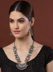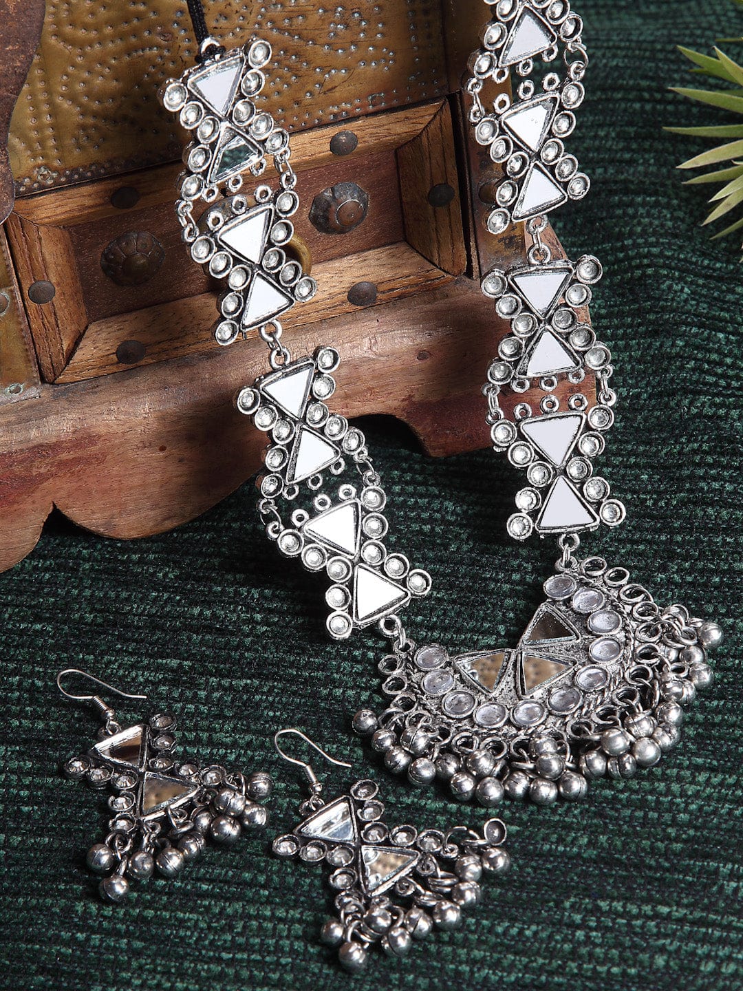 Silver Toned Mirrors & Ghungroo Studded Oxidised Silver Plated Jewellery Set