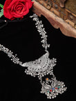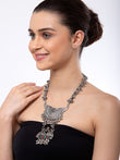 This exquisite Silver-Toned & Orange Brass Silver-Plated Temple Necklace is perfect for any occasion. Crafted using brass silver plate, it features an ornate silver-toned and orange design with intricate detailing. The lightweight construction makes it comfortable to wear. This stylish necklace is sure to turn heads.
