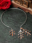 This premium silver-plated necklace is made with the finest craftsmanship, featuring brass and peach-coloured meenakari for a stunning effect. The unique design, along with its reliable silver-tone and plating, makes it a timeless piece to own.