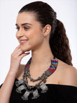 Silver-Toned & Pink Brass Silver-Plated Afghan Necklace