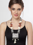 Silver-Toned & Red Brass Silver-Plated Meenakari Necklace