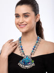 Silver-Toned & Turquoise Blue Brass Silver-Plated Handcrafted Necklace