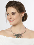 Silver-Toned & Turquoise Blue Brass Silver-Plated Oxidised Necklace