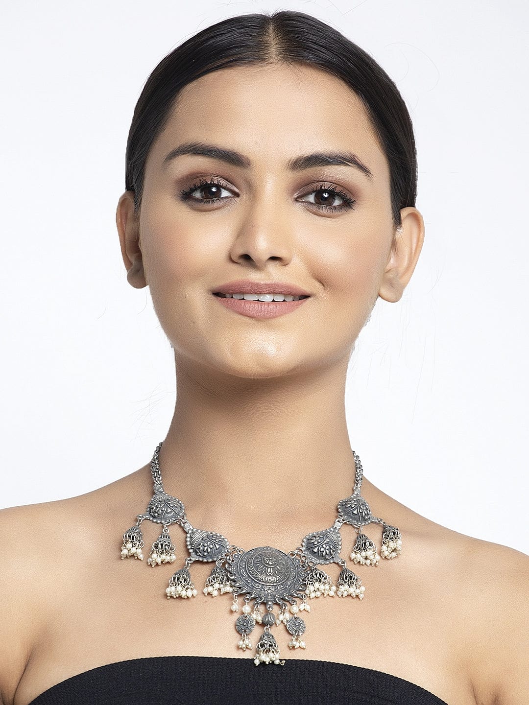 Silver-Toned & White Brass Handcrafted Oxidised Necklace