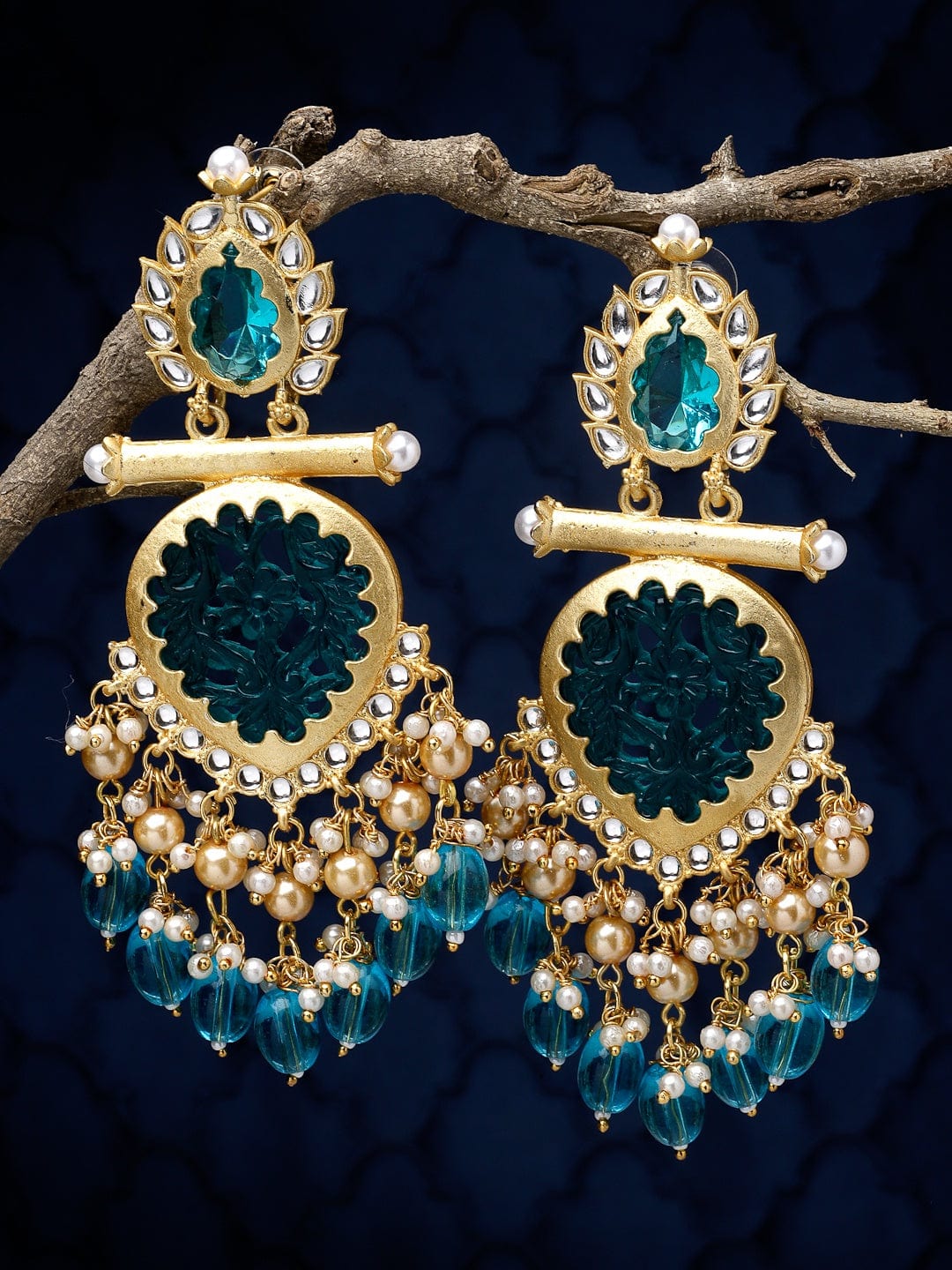 Stone and Pearls Studded Handcrafted Design Gold Plated Aishwarya Earrings