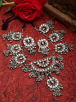 This exquisitely-crafted jewelry set features a Stones and Beads Studded Tasselled Design. Exquisitely handcrafted, this high-quality Oxidised Silver Plated jewelry set is the perfect addition to any stylish wardrobe. Show off your modern style and sophistication with this beautiful set.