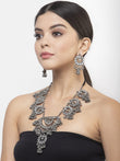 Stones and Beads Studded Tasselled Design Oxidised Silver Plated Handcrafted Jewelry Set