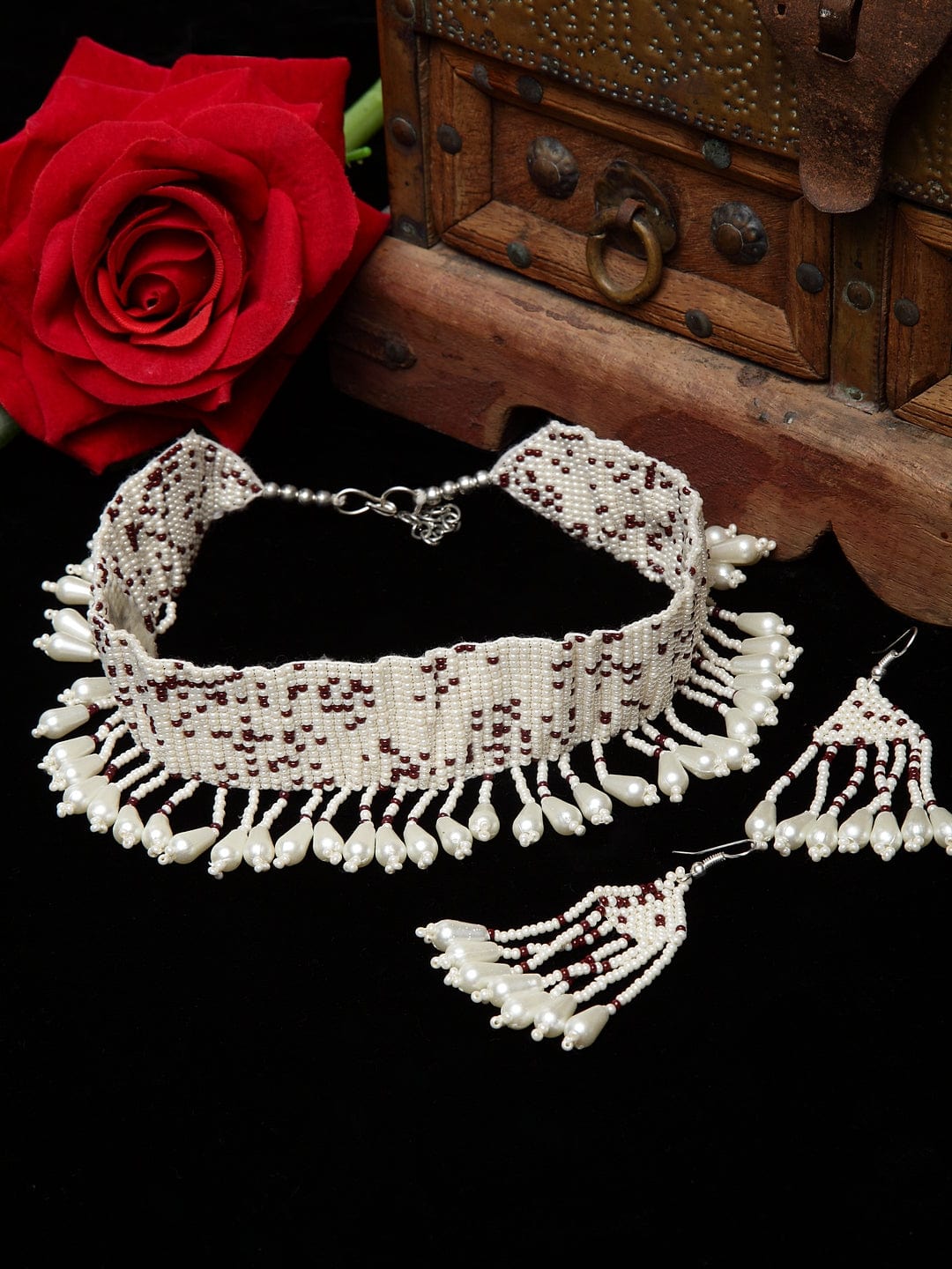 Woman Sliver-Plated Off White Pearl Beaded Handcrafted Jewellery Set