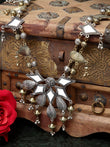 Mirrors Studded Filigree Work Floral Design Oxidised Gold Plated Handcrafted Necklace,