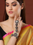 This elegant Women Gunmetal-Toned & Off White Brass Pearls Handcrafted Silver-Plated Ring Bracelet is perfect for all occasions. Featuring high-quality silver-plated rings with gunmetal-toned accents and off white brass pearls, it is sure to make a statement. Crafted with care and attention to detail, this bracelet is sure to last.