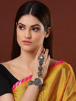 Women Gunmetal-Toned & Off White Brass Pearls Handcrafted Silver-Plated Ring Bracelet