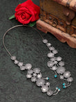 Crystals & Pearls Studded Floral Design Oxidised Silver Plated Handcrafted Antique Hasli