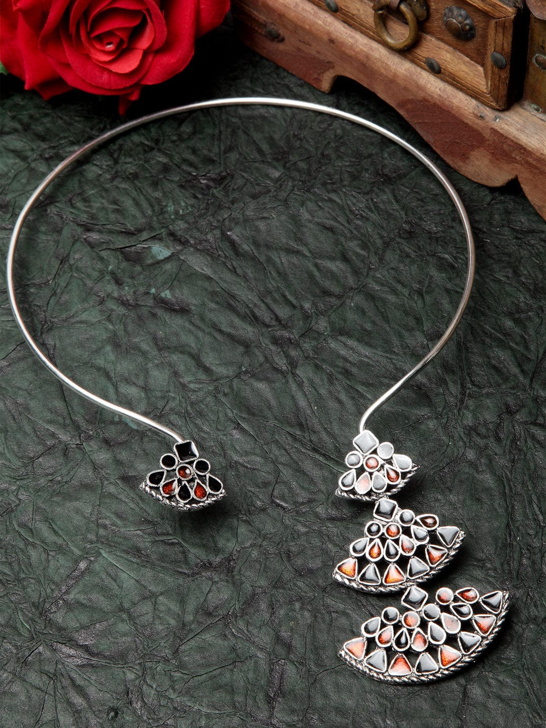 Women Red & Black Silver-Plated Hand Painted Meenakari Hasli Choker Necklace