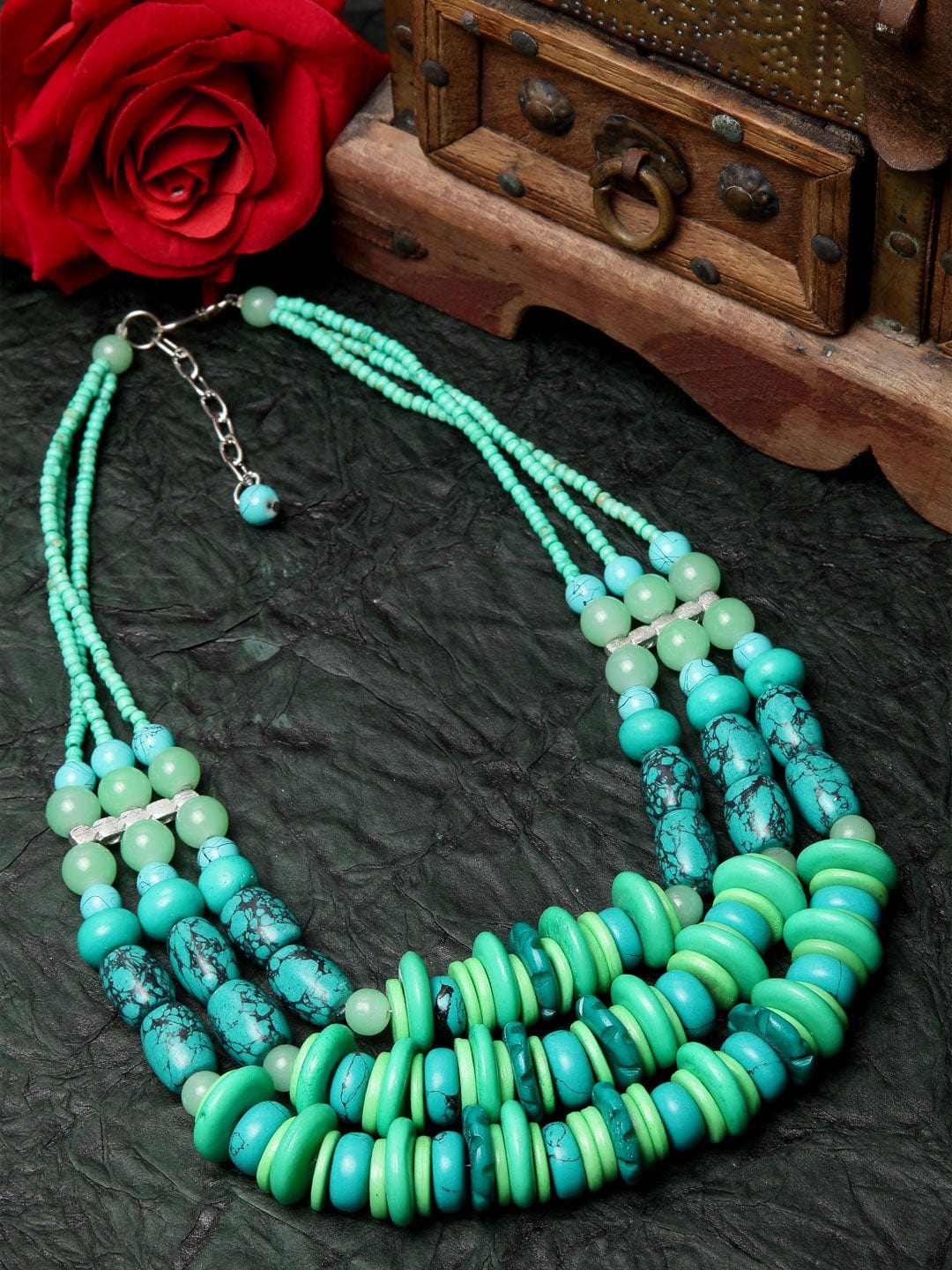 This Women Sea Green Tribal Necklace is adorned with a unique textured pattern. It's lightweight and comfortable to wear, made from high-quality materials, and has a secure clasp that won't slip off. Enhance your daily wardrobe with this stylish yet minimalist piece.