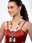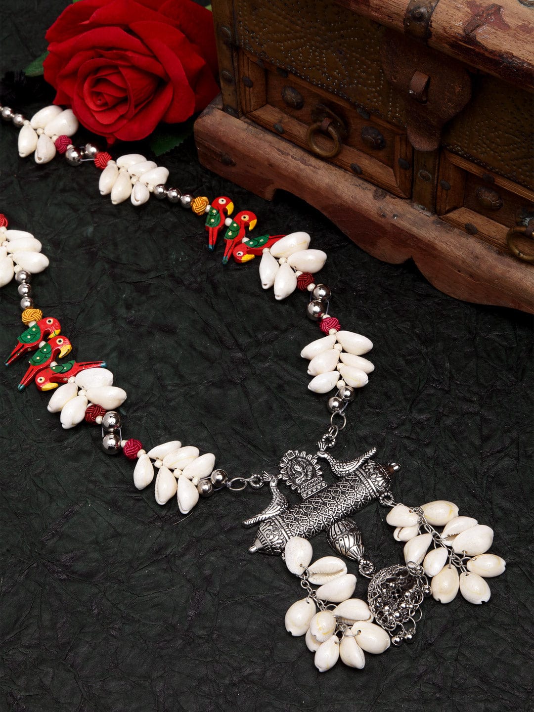 Women Silver Cowri Shells Studded Tribal Tasselled Necklace