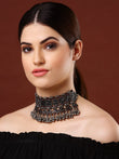 Women Silver-Toned Meenakari Oxidised Choker Necklace